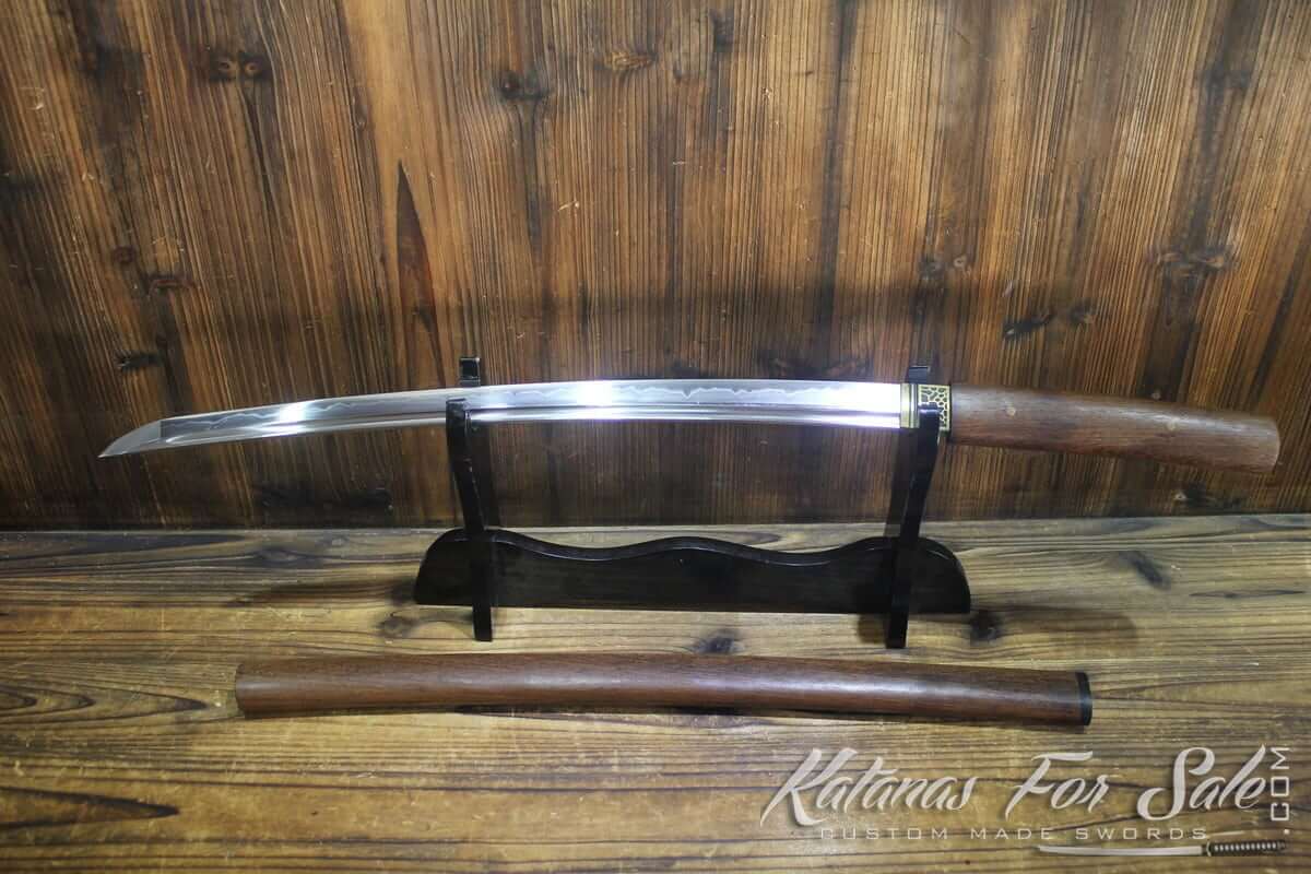 Wakizashi Shirasaya Recto de Palisandro con Acero Forjado a Mano