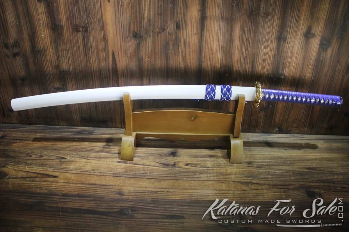 El Saya blanco está hecho de madera de alta calidad laqueada. Esta espada es excelente para entrenamiento (capaz de realizar perfectamente Tameshigiri) y es también una hermosa pieza de arte que puedes exhibir tanto en tu casa como en tu oficina.