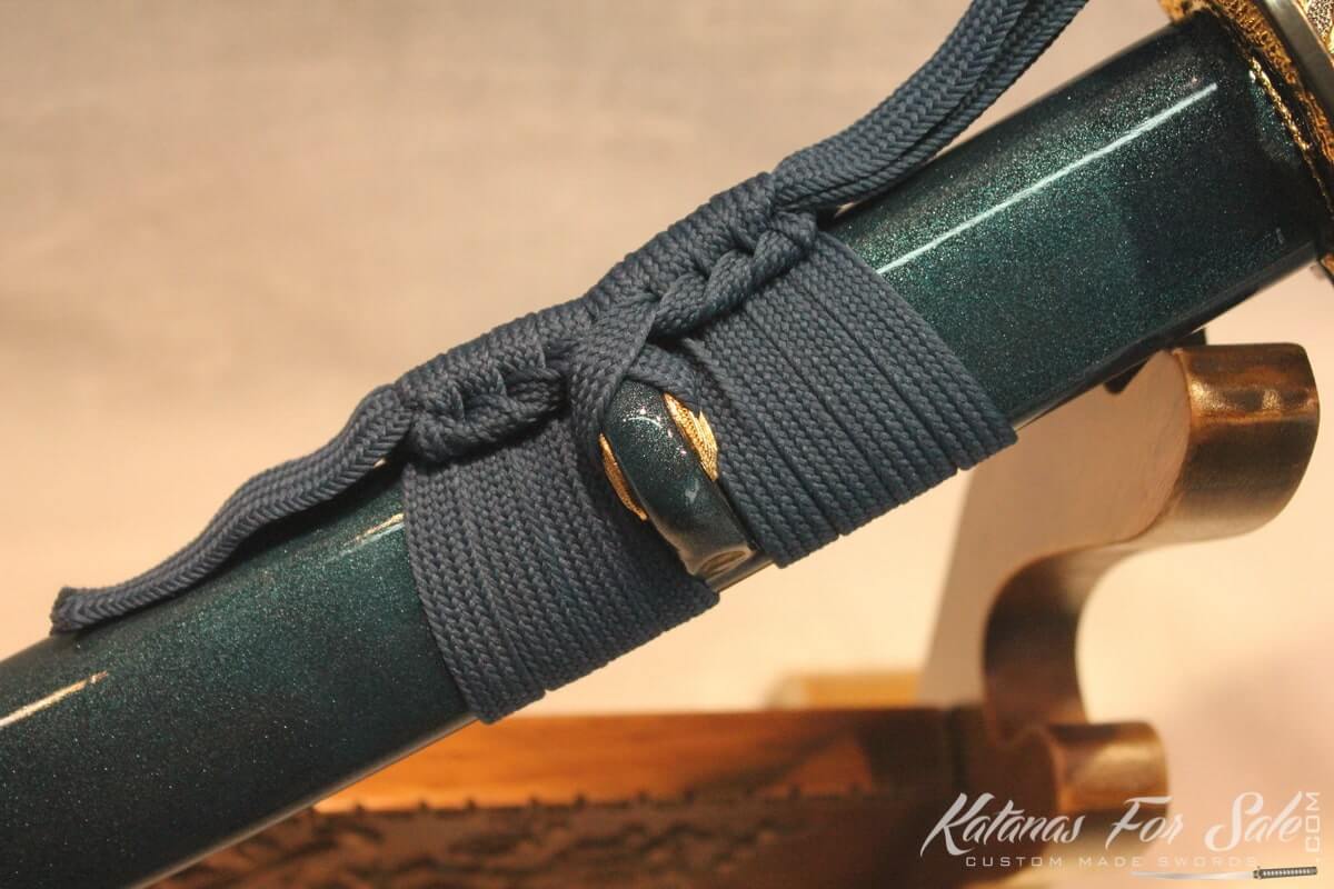 Tsuka (Handle): authentic white ray skin with blue wrap