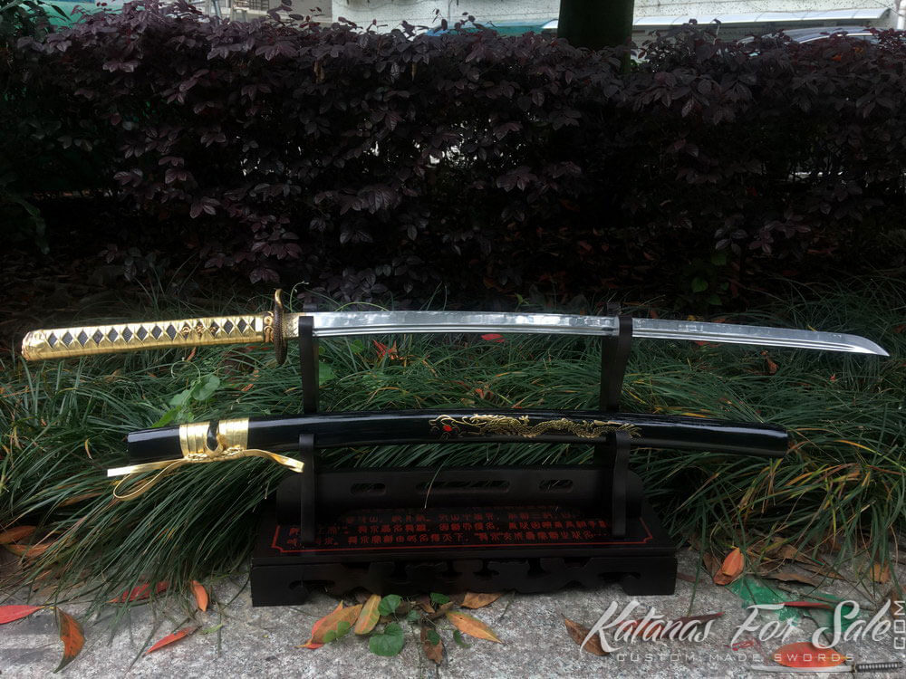 Samurai Katana T10 Clay Tempered Steel with Gold Blade