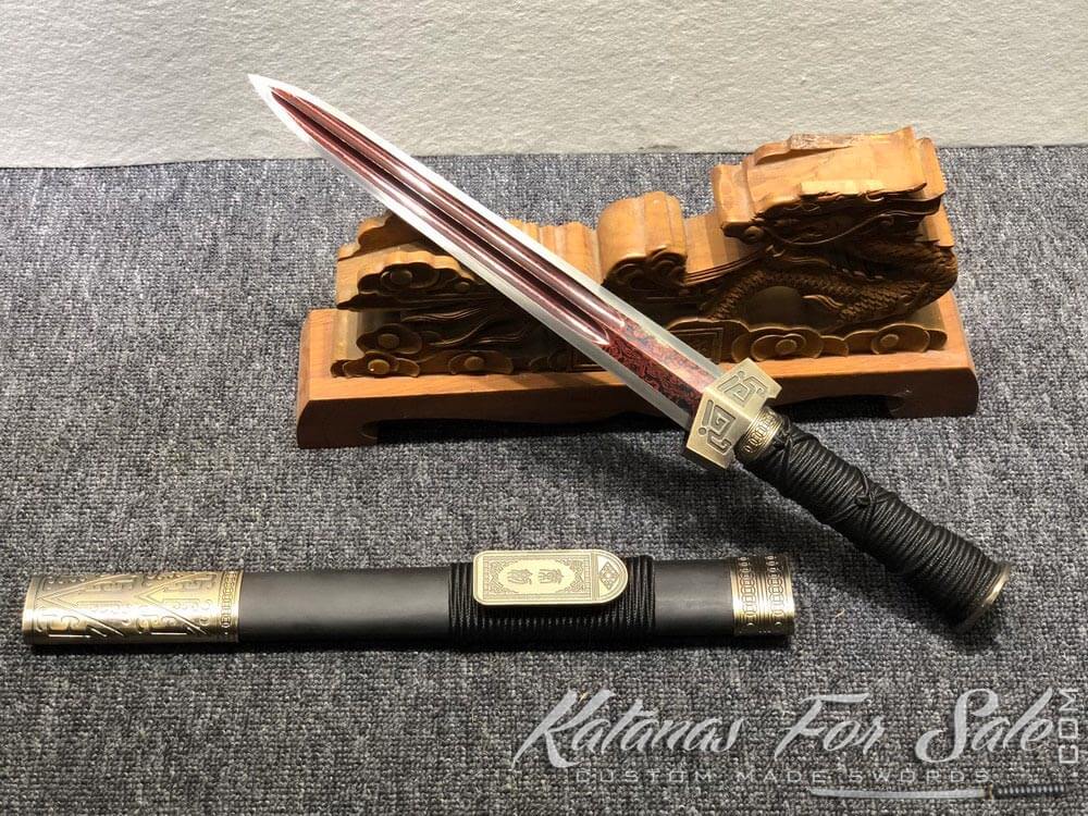 T10 Folded Steel with Red Acid Short Jian Sword